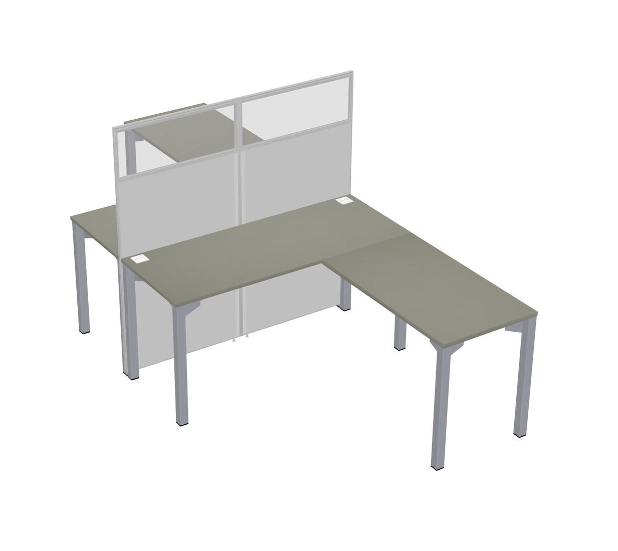 Grey Shadows Shared L-shape Office Cubicle Panel System For 2 Persons