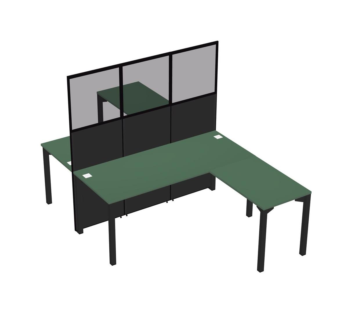 Green Shared L-shape Office Cubicle Panel System For 2 Persons