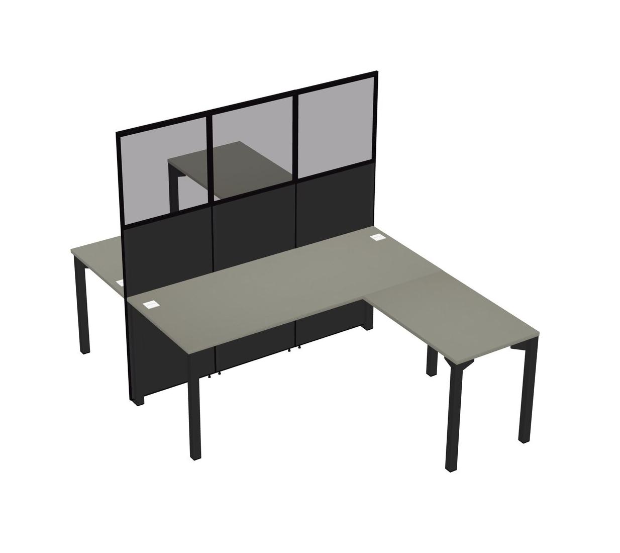 Grey Shadows Shared L-shape Office Cubicle Panel System For 2 Persons