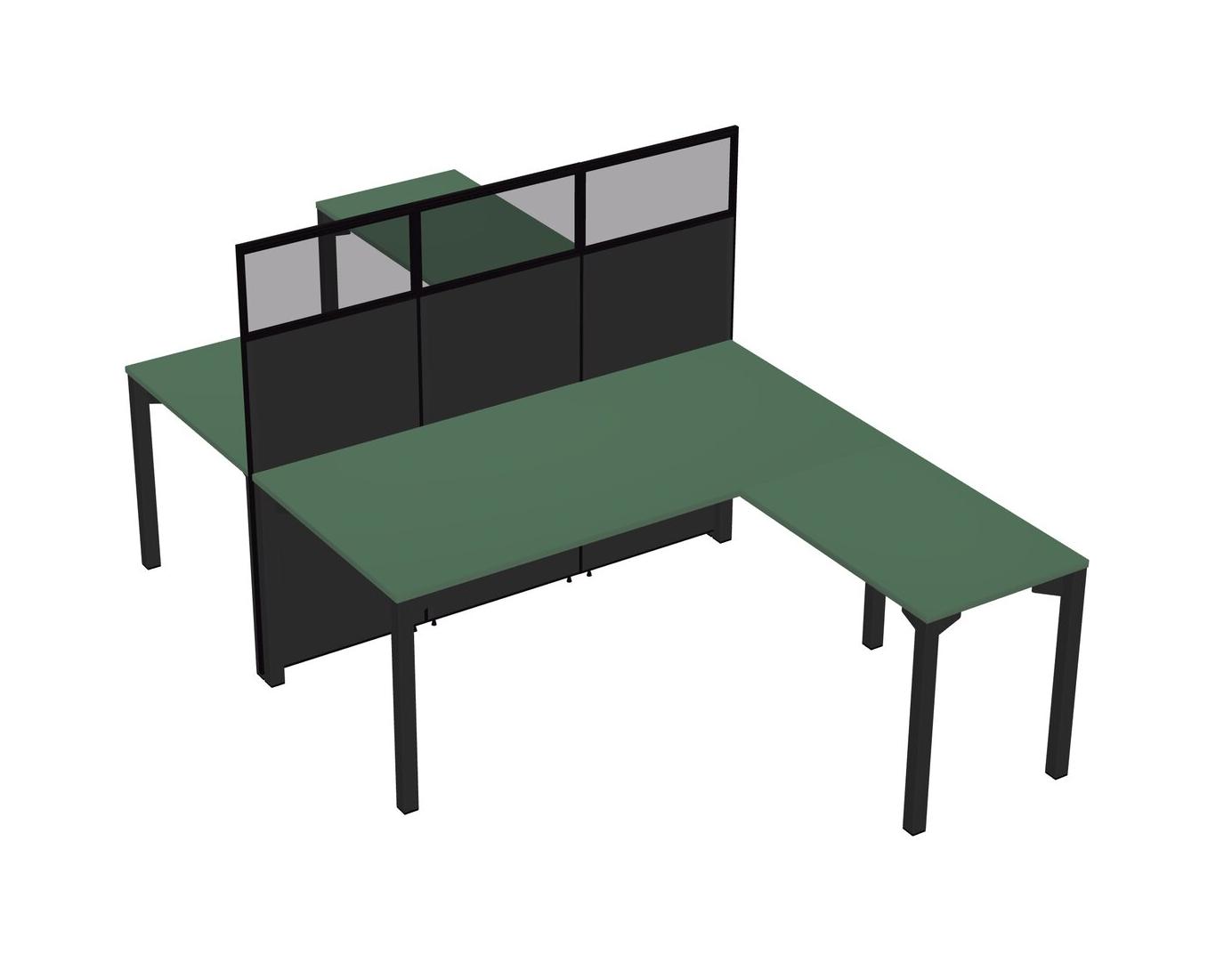 Green Shared L-shape Office Cubicle Panel System For 2 Persons