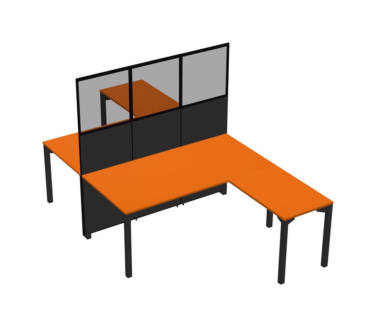 Orange Shared L-shape Office Cubicle Panel System For 2 Persons