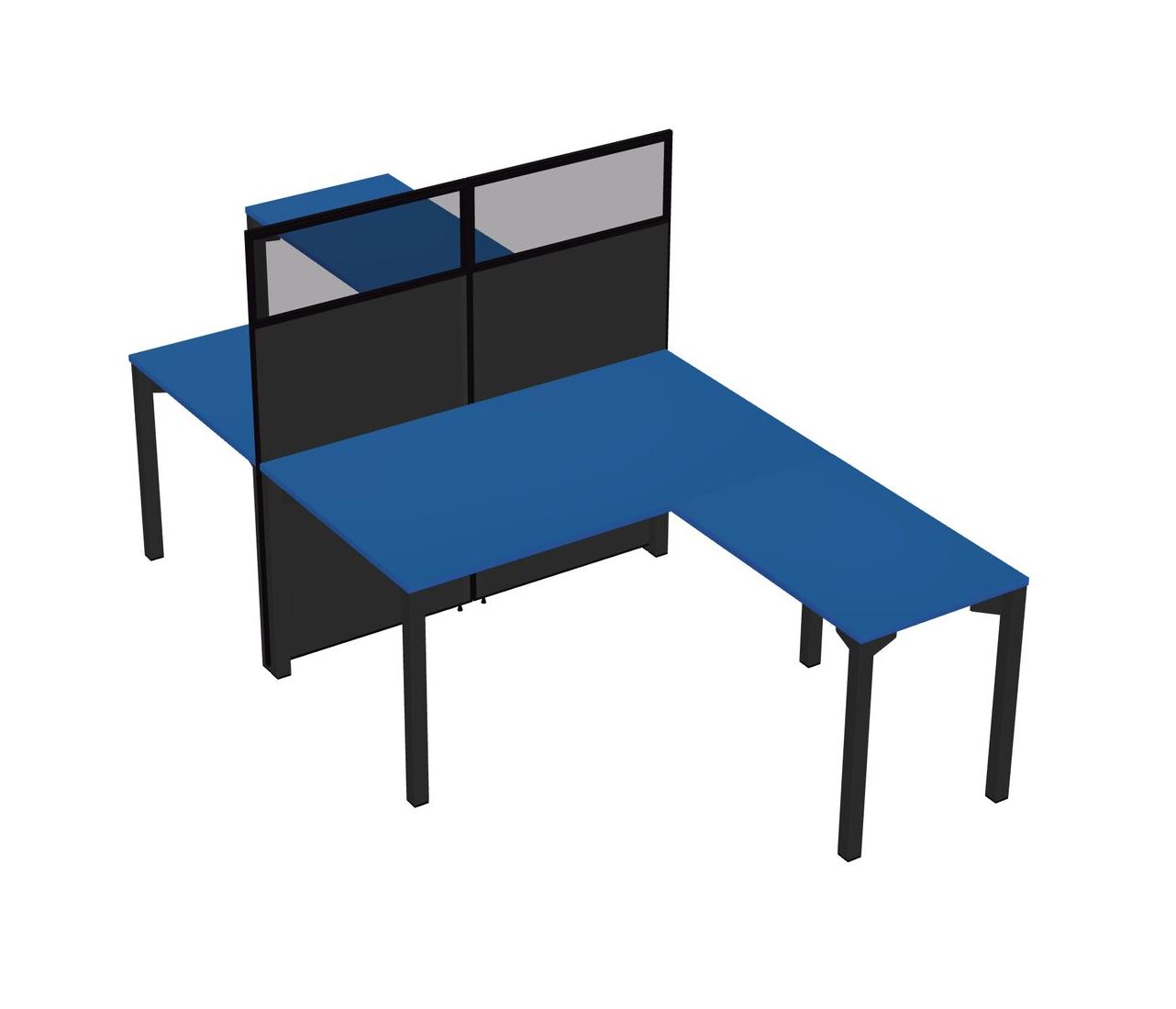 Prism Blue Shared L-shape Office Cubicle Panel System For 2 Persons