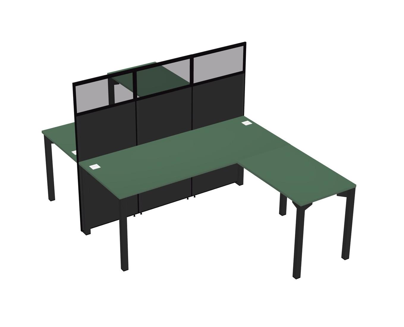 Green Shared L-shape Office Cubicle Panel System For 2 Persons