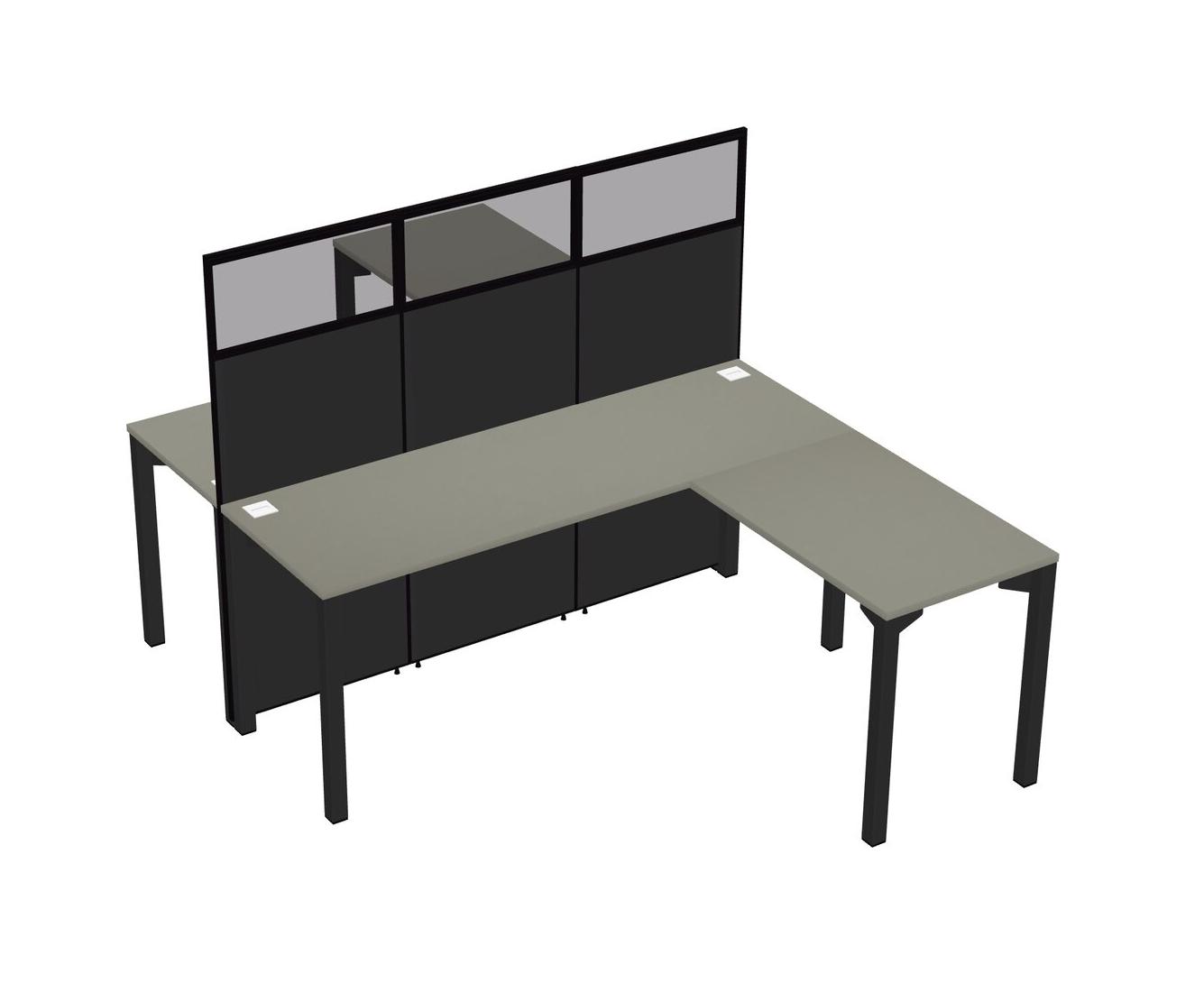 Grey Shadows Shared L-shape Office Cubicle Panel System For 2 Persons