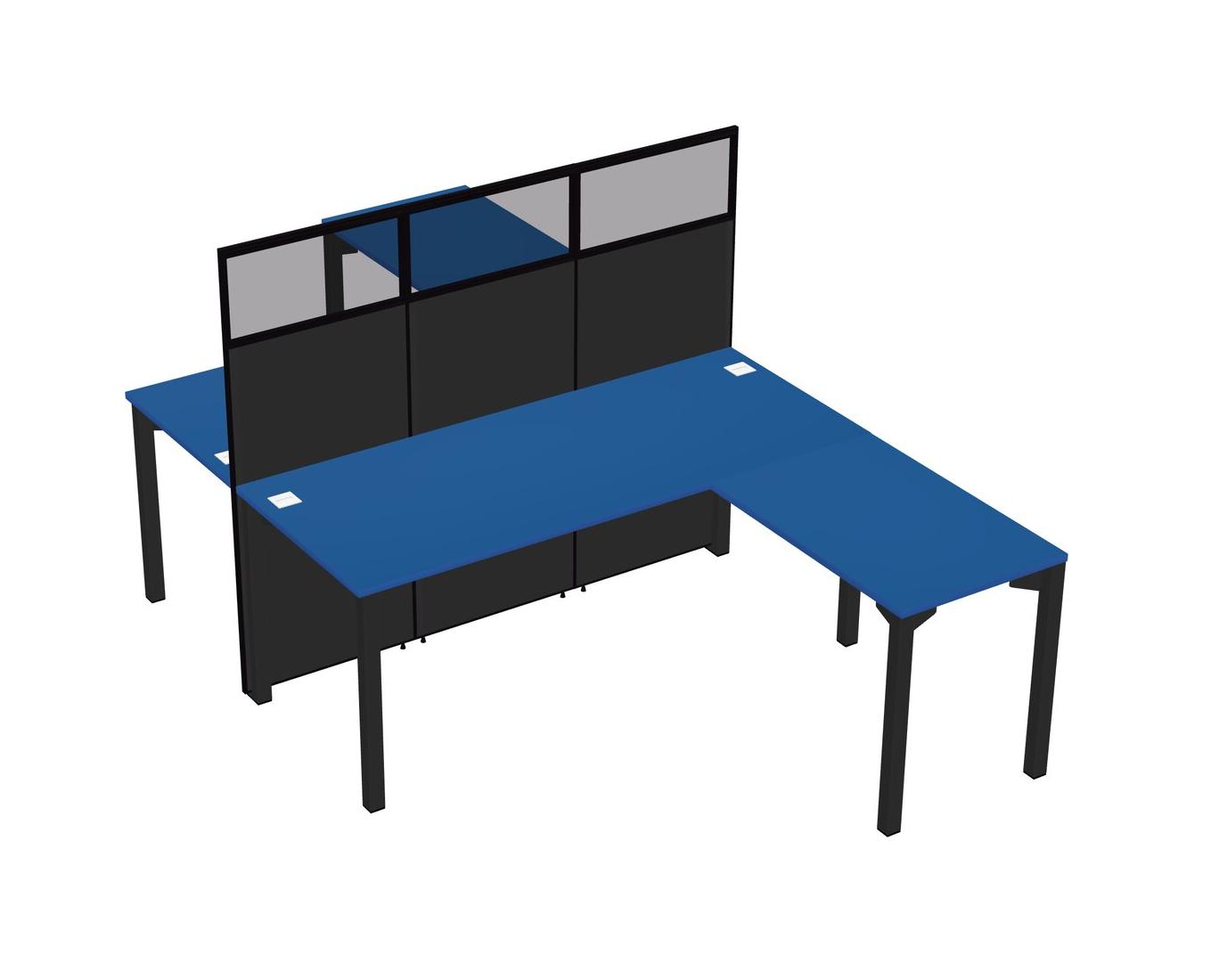 Prism Blue Shared L-shape Office Cubicle Panel System For 2 Persons