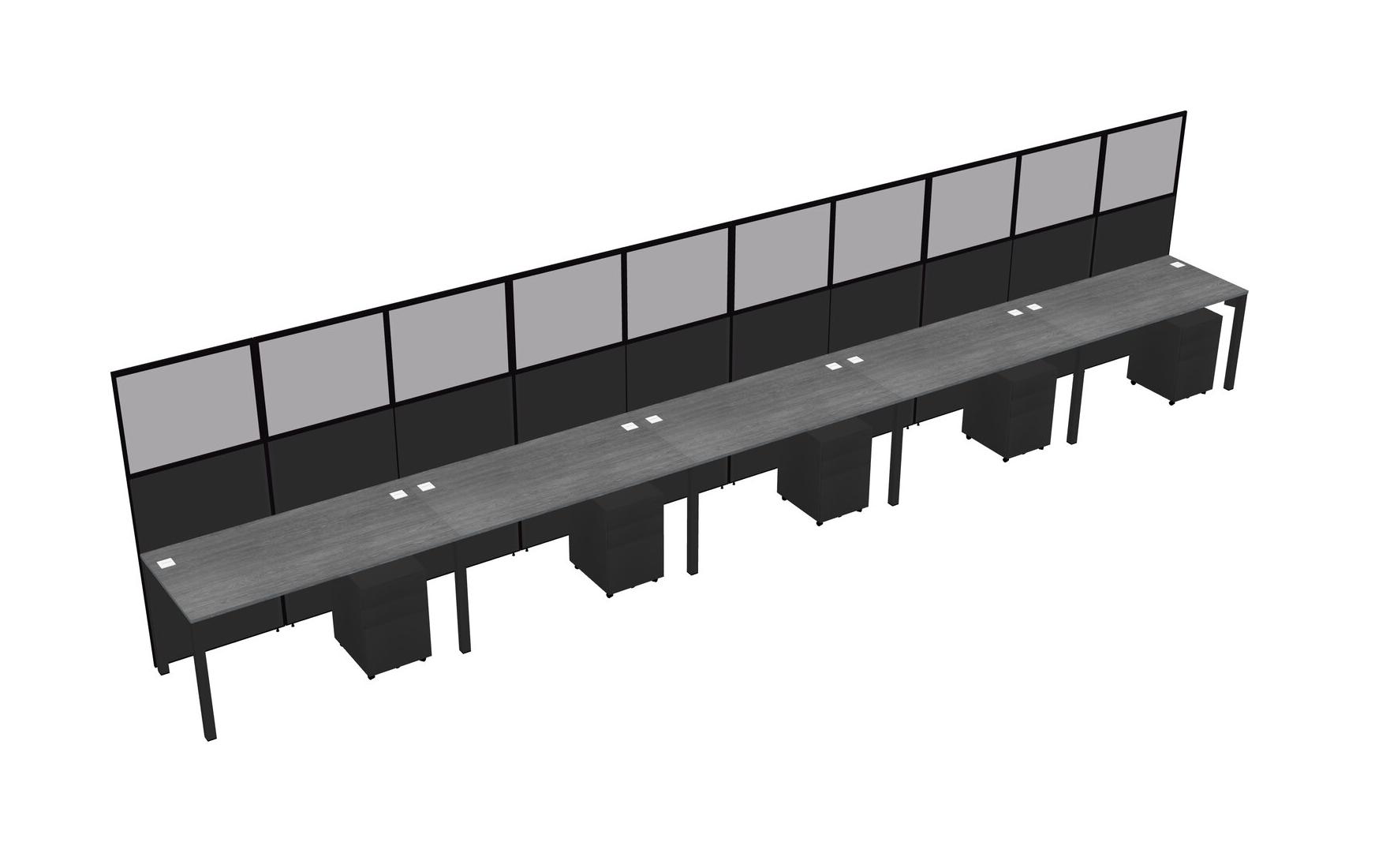 Grey Shared Rectangular Office Cubicle Panel System With Mobile Drawers For 5 Persons