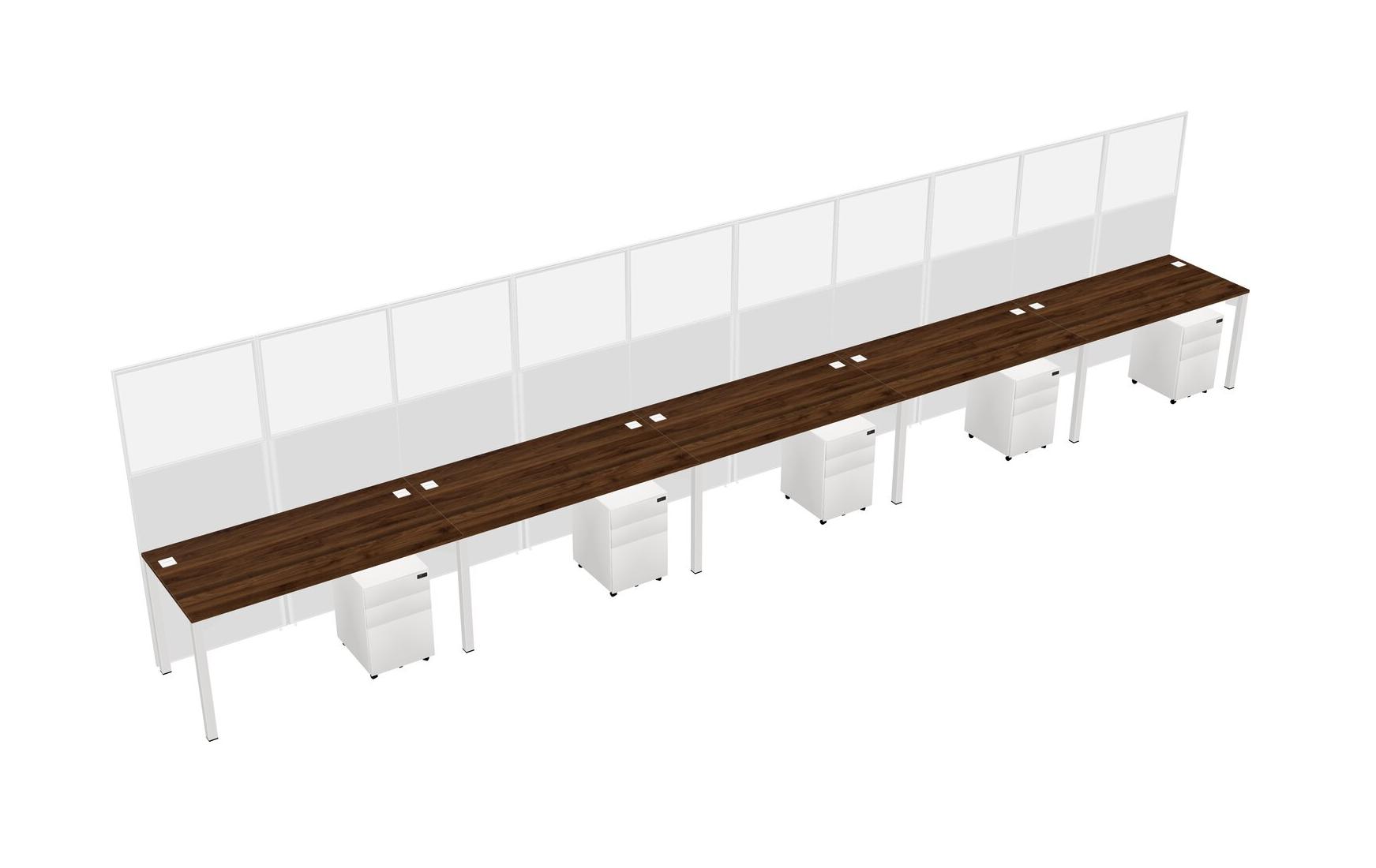 Columbia Walnut Shared Rectangular Office Cubicle Panel System With Mobile Drawers For 5 Persons
