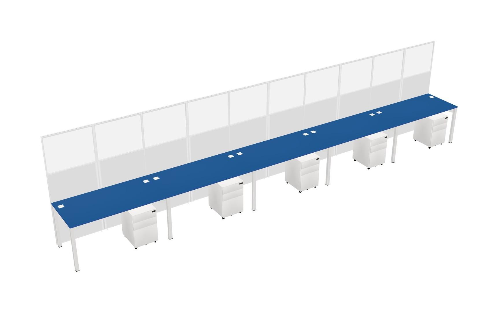 Prism Blue Shared Rectangular Office Cubicle Panel System With Mobile Drawers For 5 Persons
