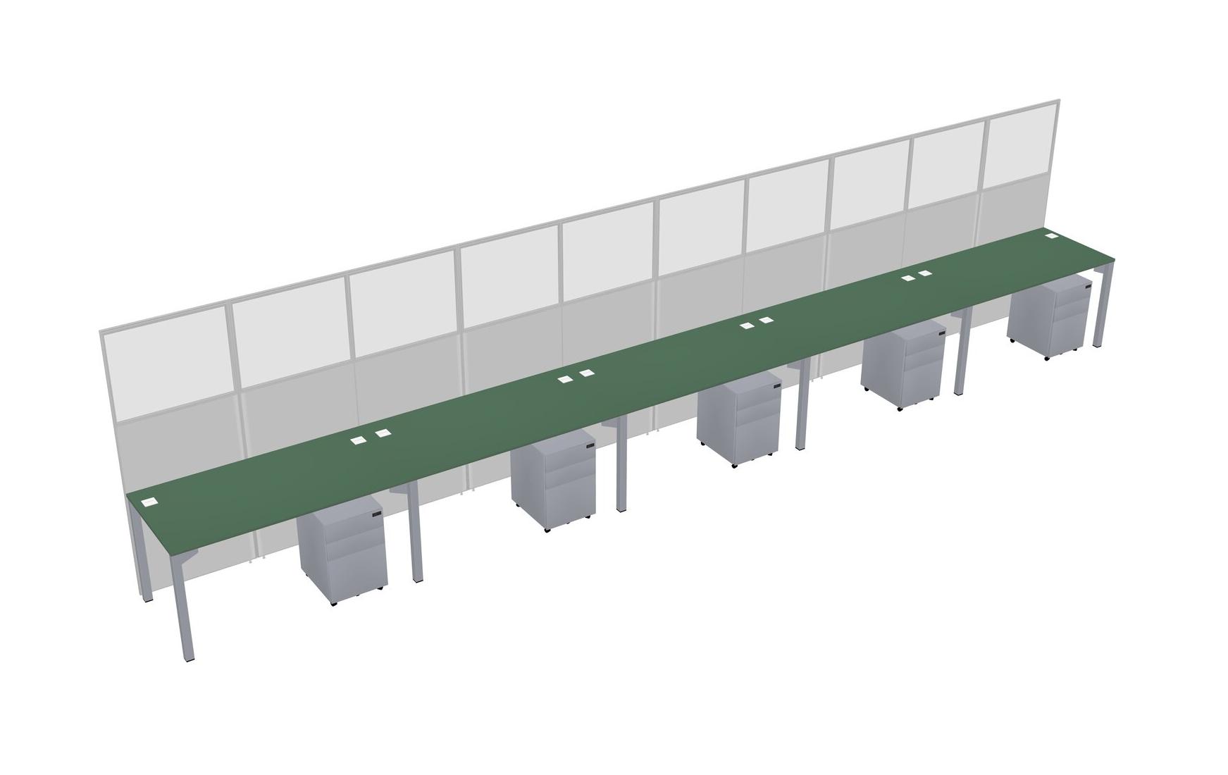 Green Shared Rectangular Office Cubicle Panel System With Mobile Drawers For 5 Persons