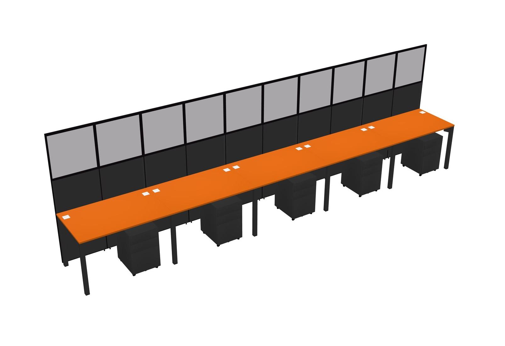Orange Shared Rectangular Office Cubicle Panel System With Mobile Drawers For 5 Persons