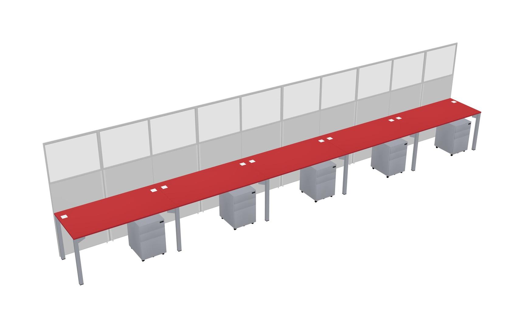 Prism Red Shared Rectangular Office Cubicle Panel System With Mobile Drawers For 5 Persons