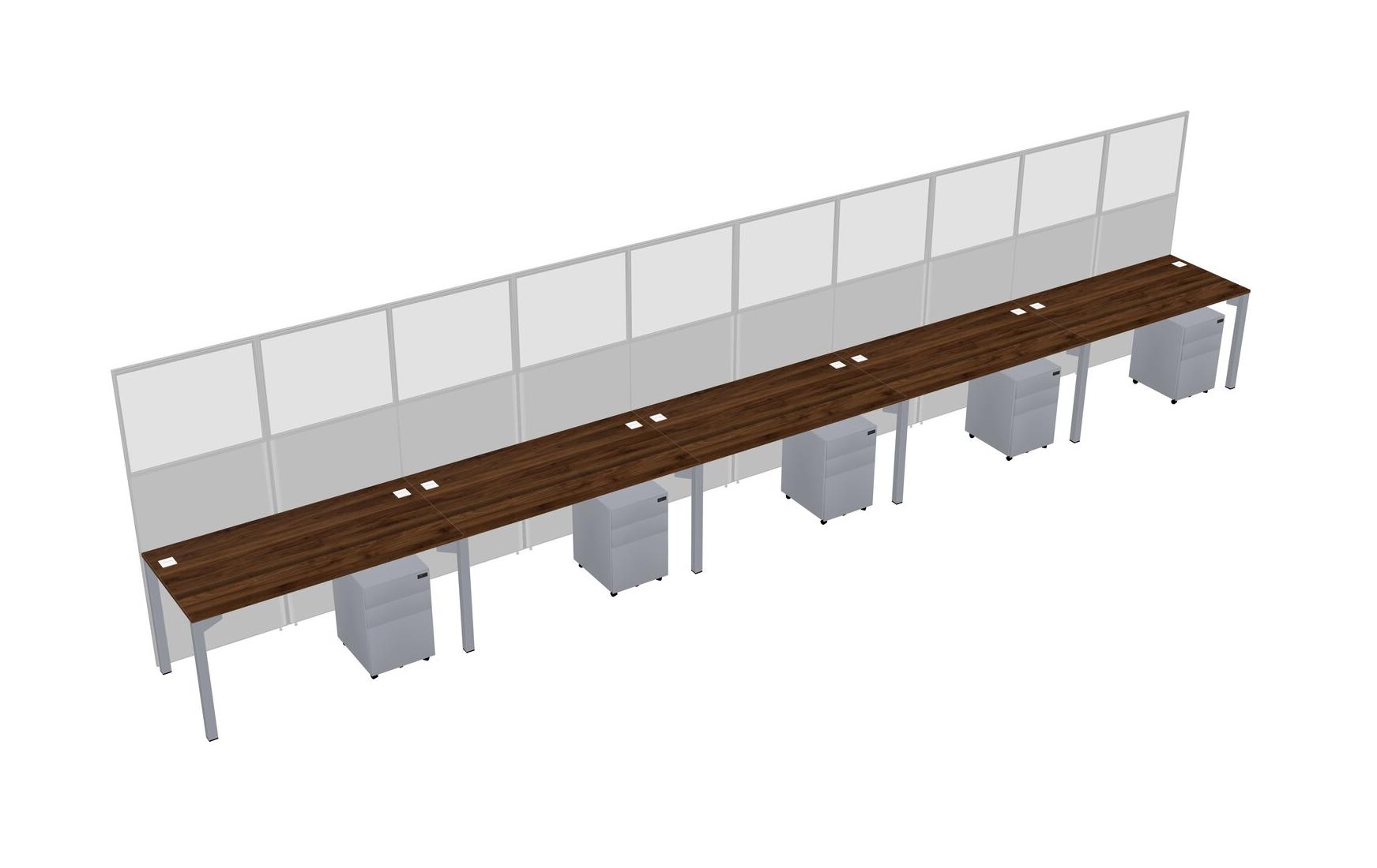Columbia Walnut Shared Rectangular Office Cubicle Panel System With Mobile Drawers For 5 Persons