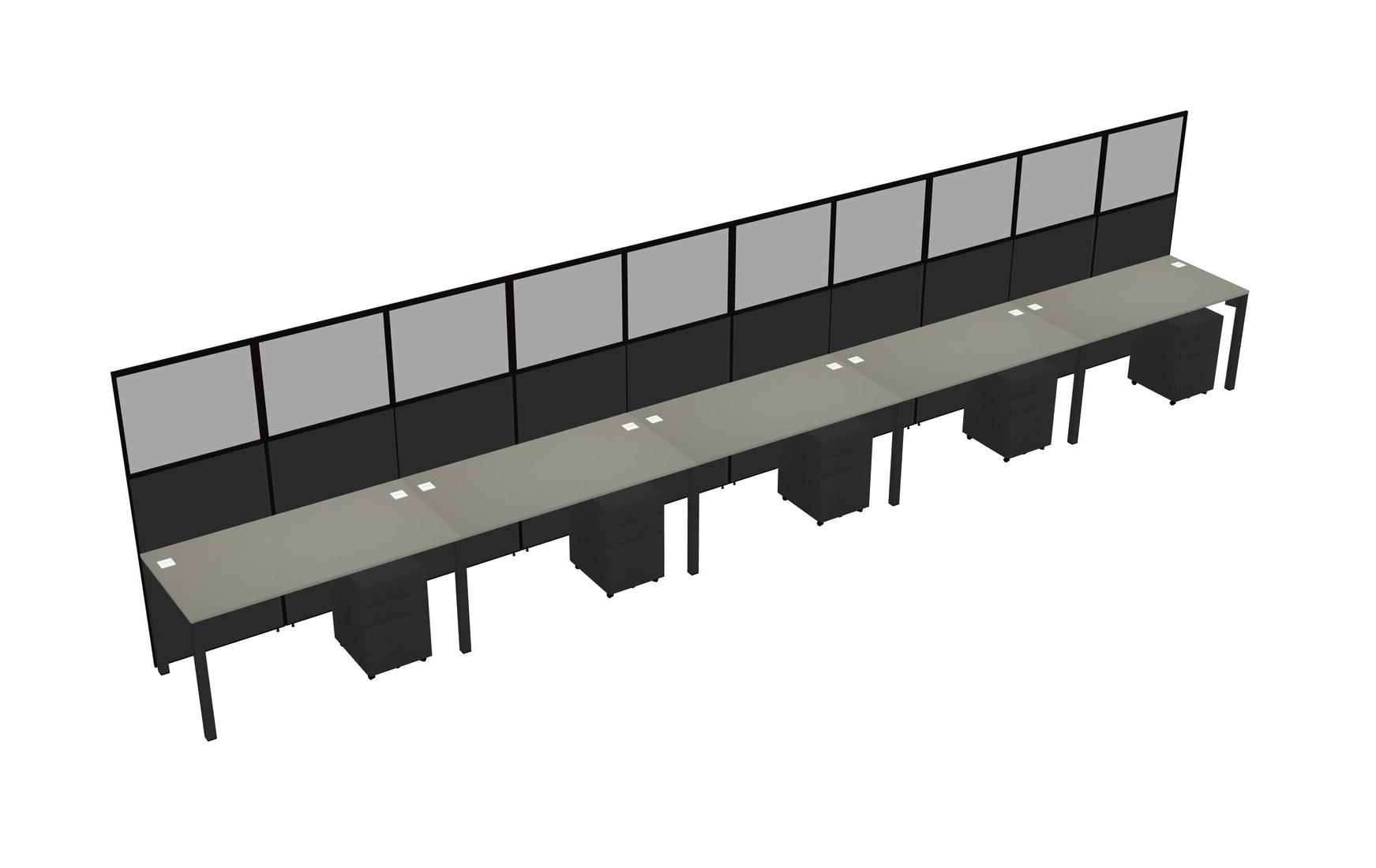 Grey Shadows Shared Rectangular Office Cubicle Panel System With Mobile Drawers For 5 Persons