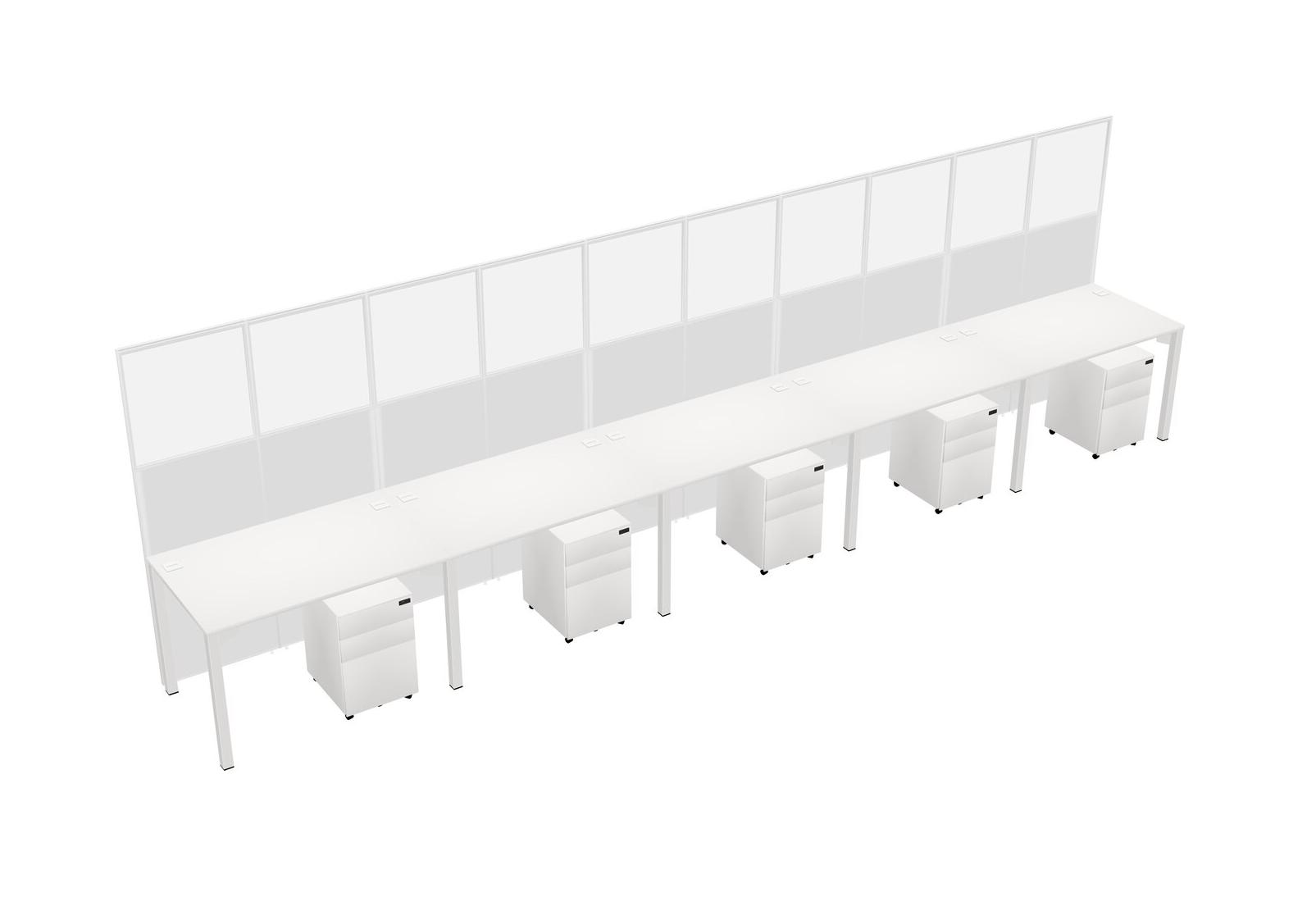 White Shared Rectangular Office Cubicle Panel System With Mobile Drawers For 5 Persons