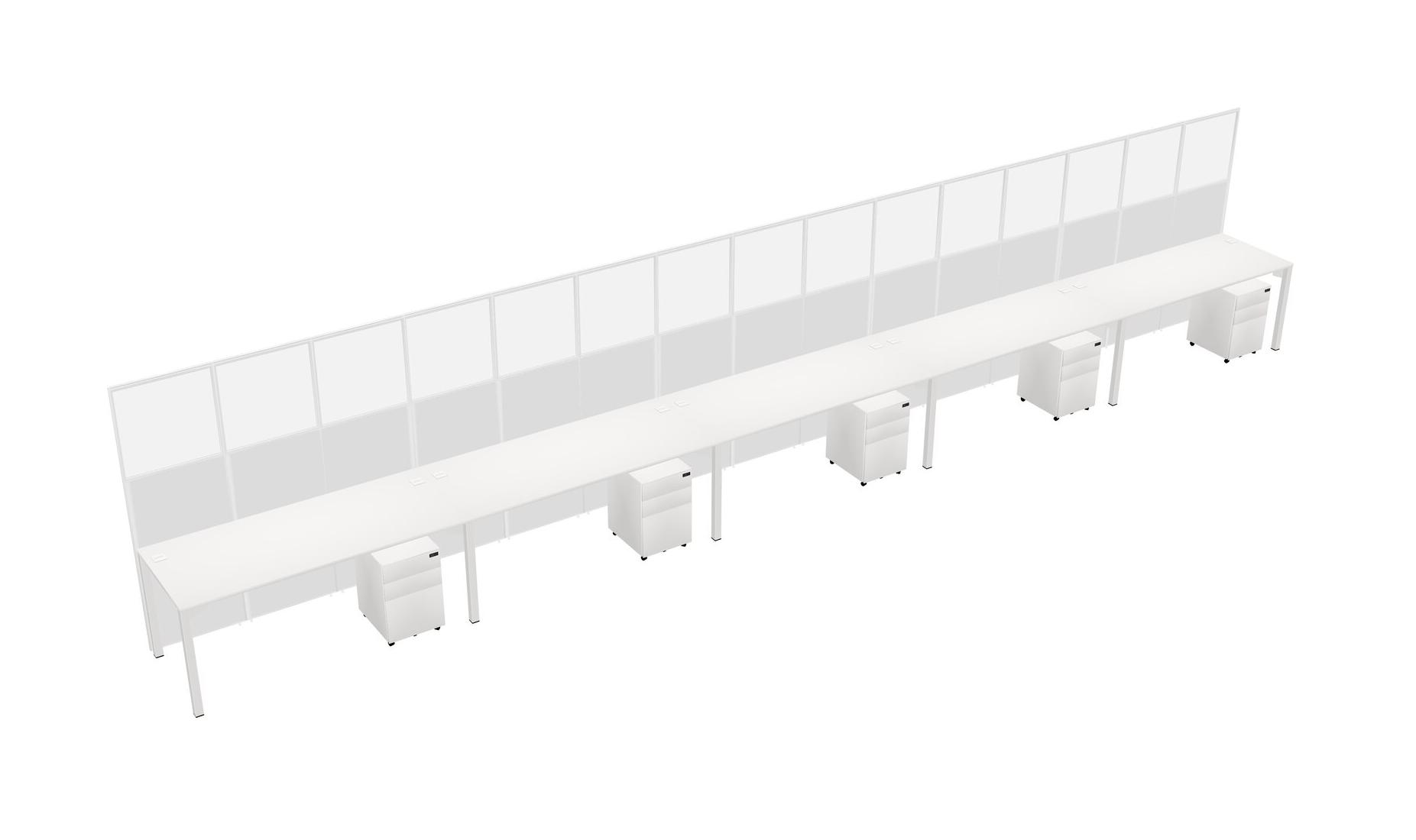 White Shared Rectangular Office Cubicle Panel System With Mobile Drawers For 5 Persons