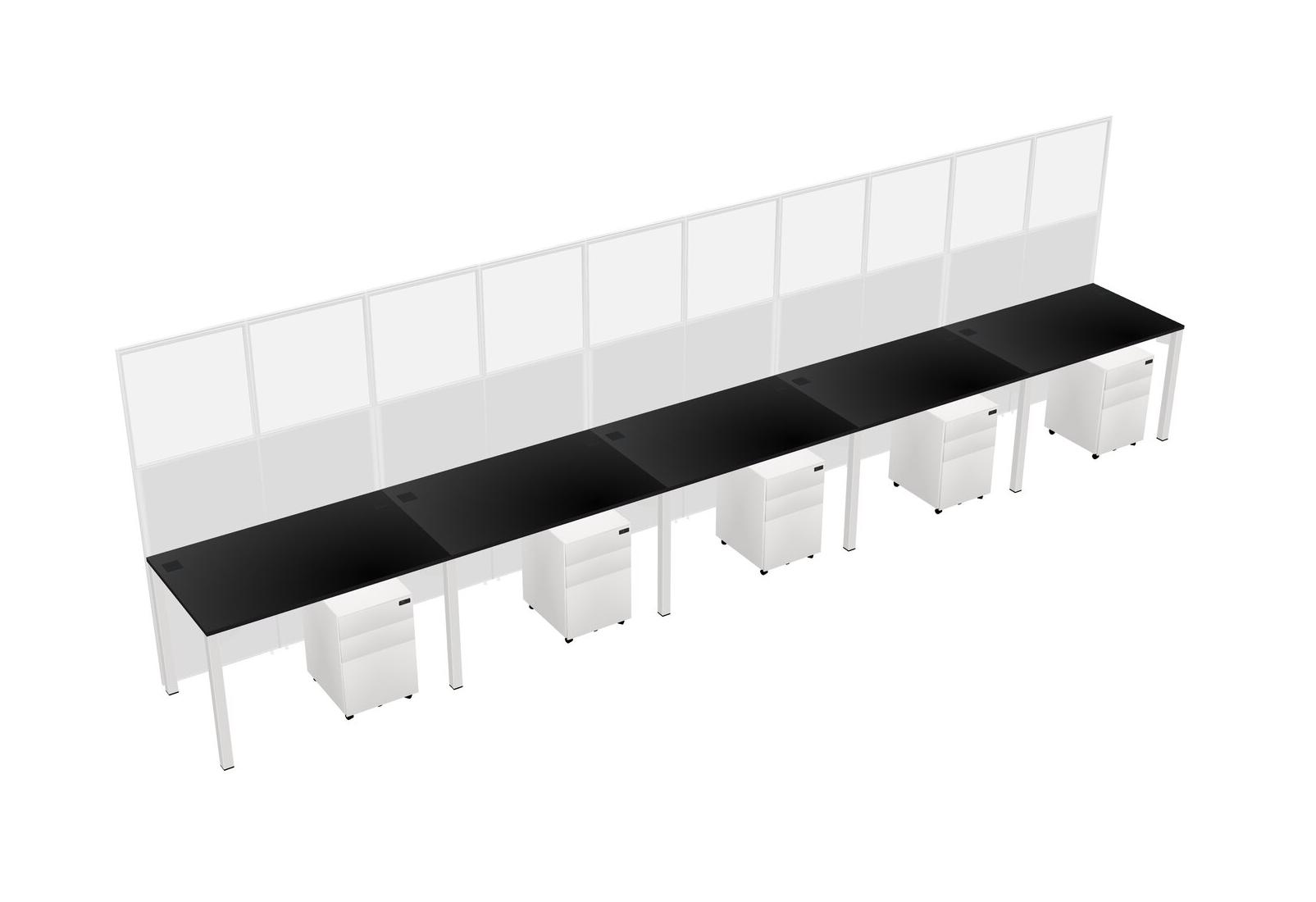 Black Shared Rectangular Office Cubicle Panel System With Mobile Drawers For 5 Persons