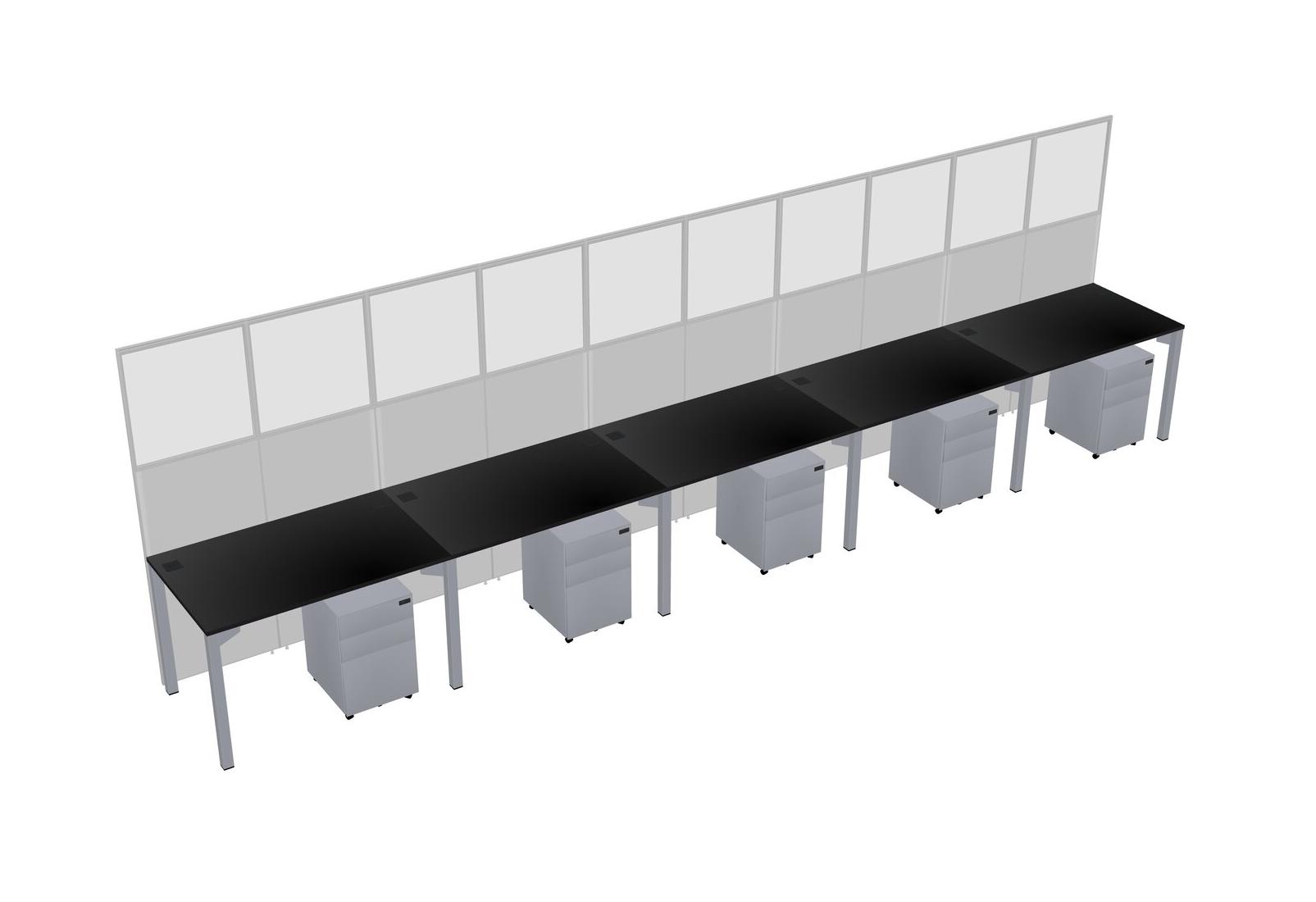 Black Shared Rectangular Office Cubicle Panel System With Mobile Drawers For 5 Persons