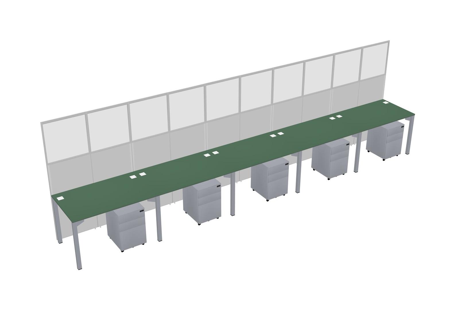 Green Shared Rectangular Office Cubicle Panel System With Mobile Drawers For 5 Persons