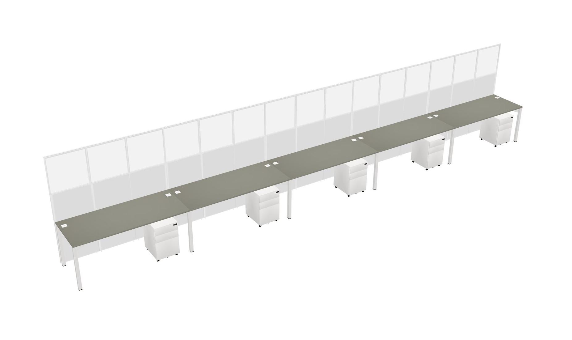 Grey Shadows Shared Rectangular Office Cubicle Panel System With Mobile Drawers For 5 Persons