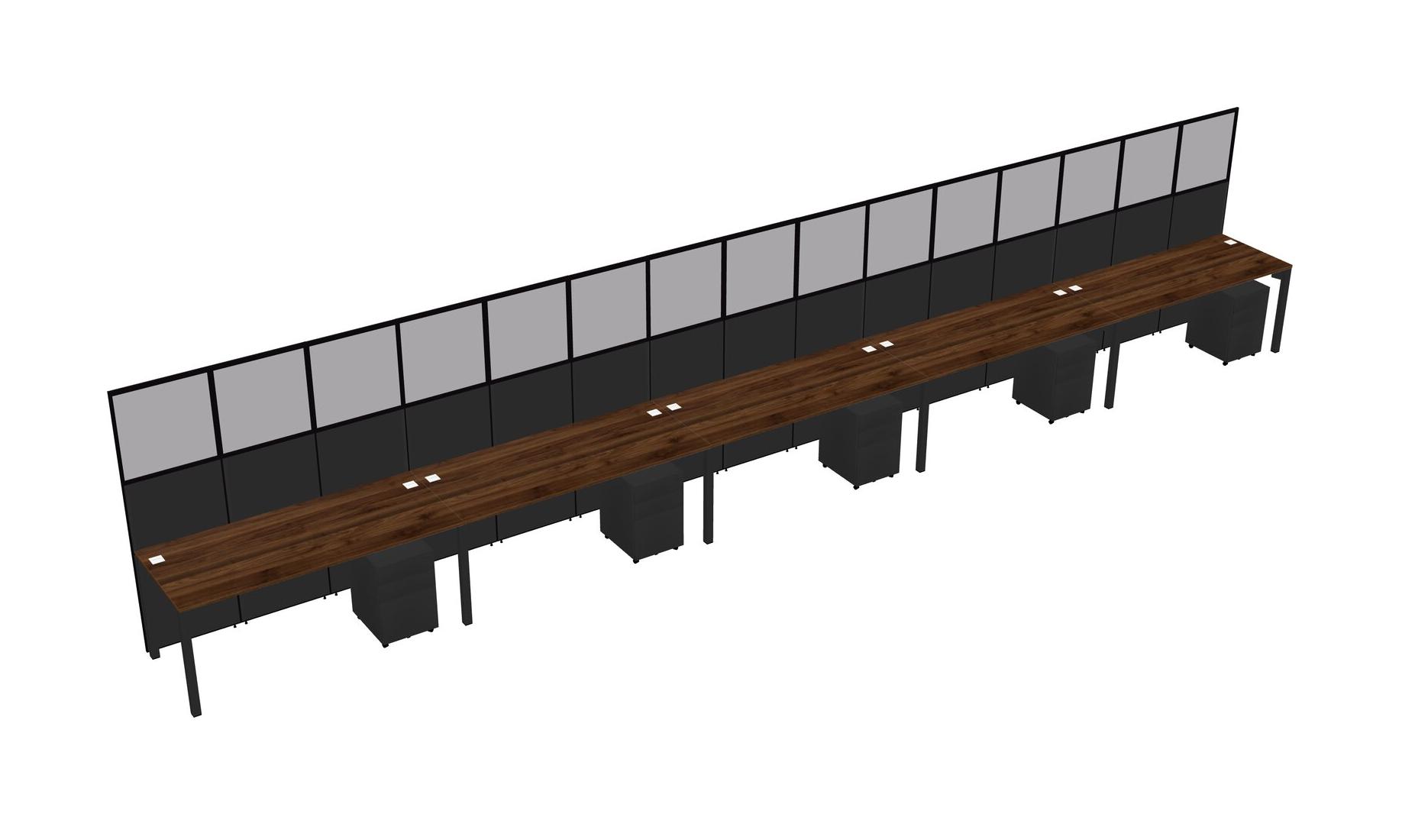 Columbia Walnut Shared Rectangular Office Cubicle Panel System With Mobile Drawers For 5 Persons