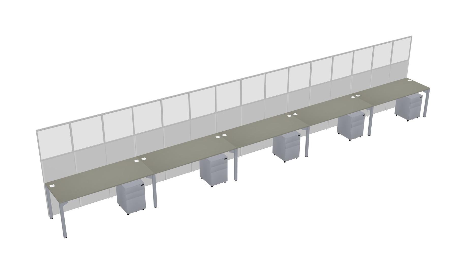 Grey Shadows Shared Rectangular Office Cubicle Panel System With Mobile Drawers For 5 Persons