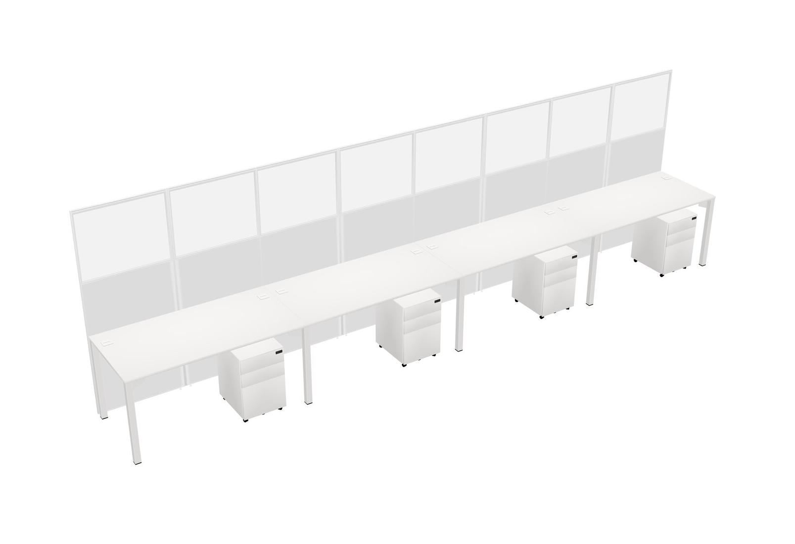 White Shared Rectangular Office Cubicle Panel System With Mobile Drawers For 4 Persons