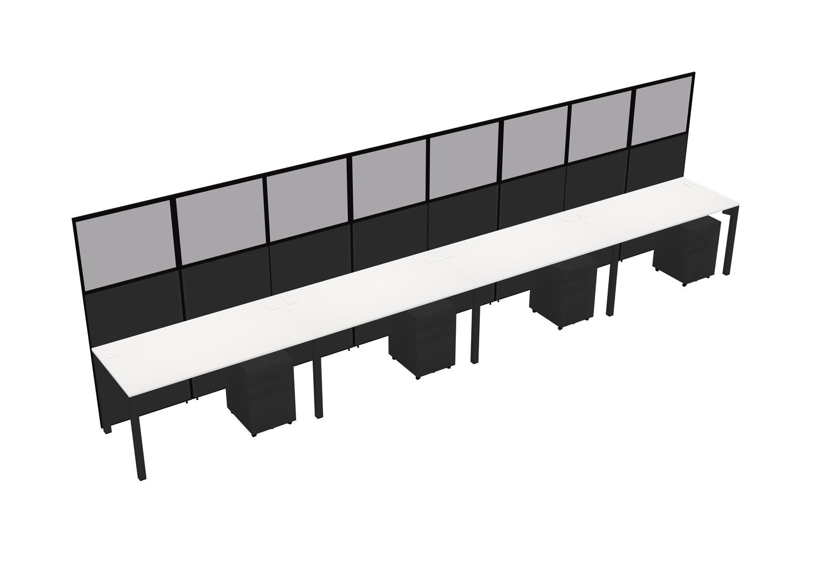 White Shared Rectangular Office Cubicle Panel System With Mobile Drawers For 4 Persons