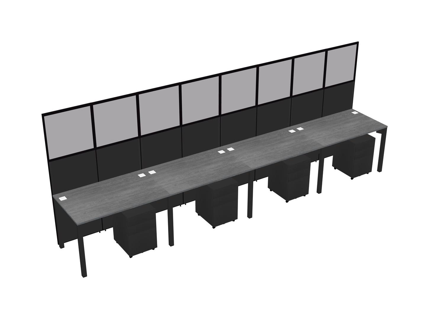 Grey Shared Rectangular Office Cubicle Panel System With Mobile Drawers For 4 Persons