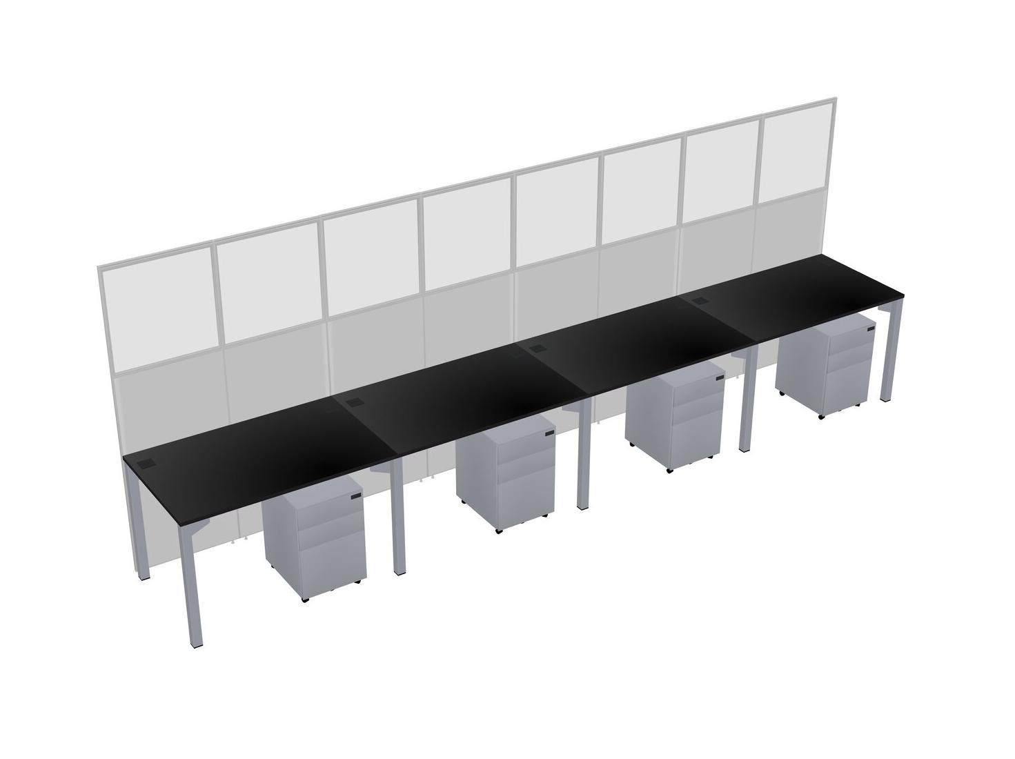 Black Shared Rectangular Office Cubicle Panel System With Mobile Drawers For 4 Persons