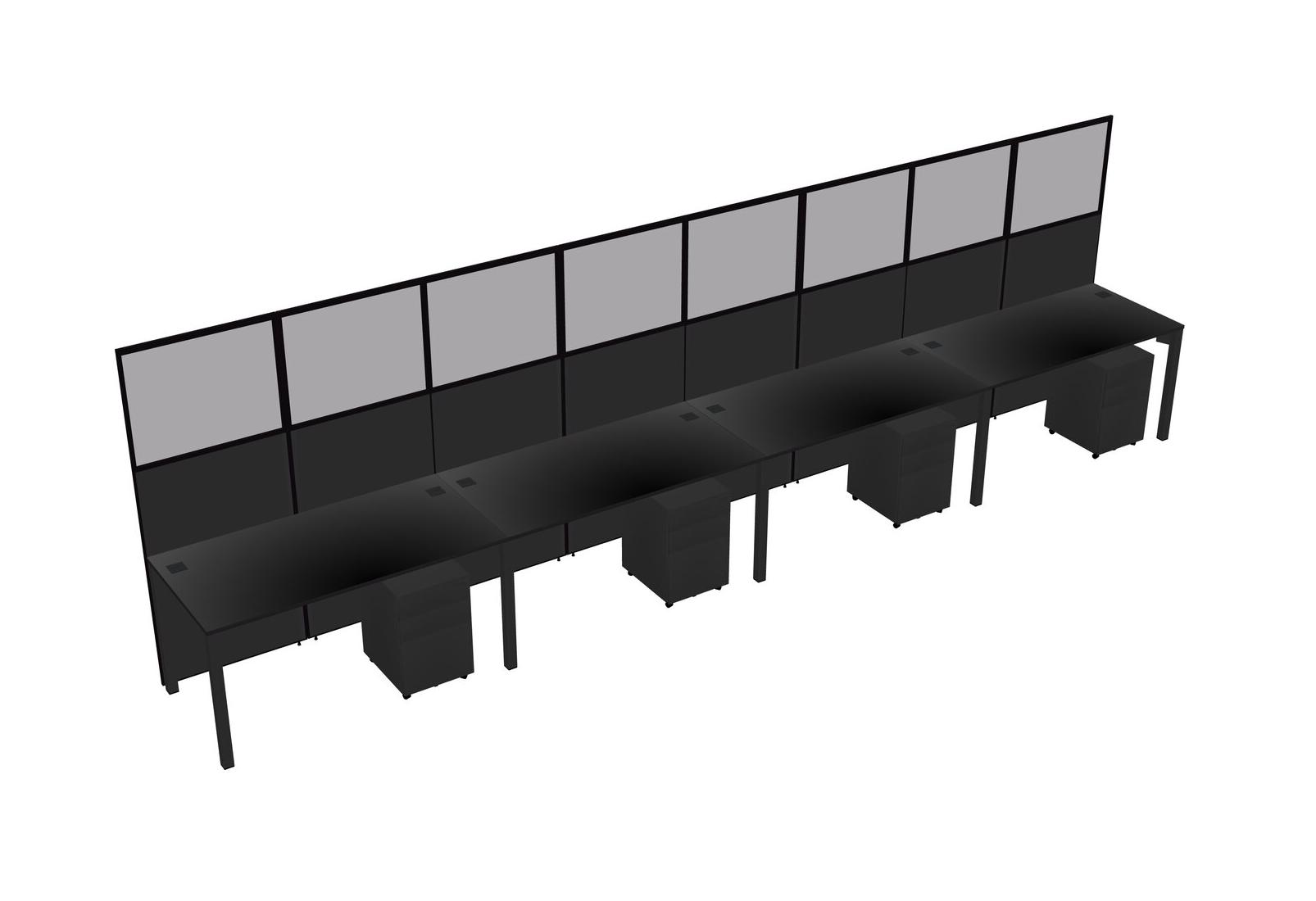 Black Shared Rectangular Office Cubicle Panel System With Mobile Drawers For 4 Persons