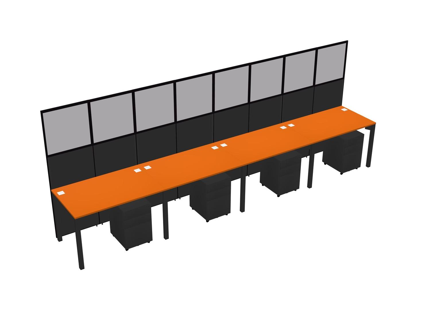 Orange Shared Rectangular Office Cubicle Panel System With Mobile Drawers For 4 Persons