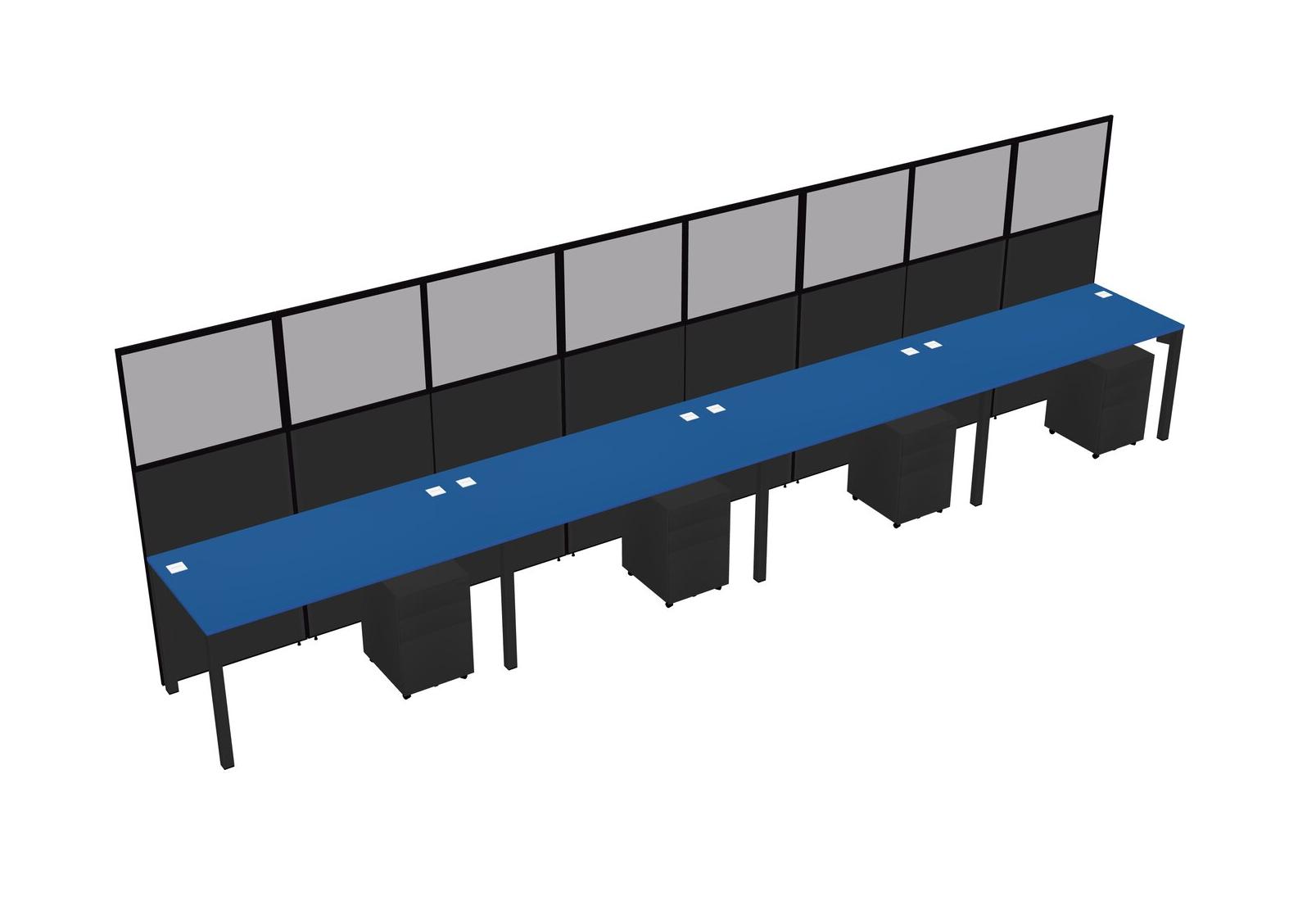 Prism Blue Shared Rectangular Office Cubicle Panel System With Mobile Drawers For 4 Persons