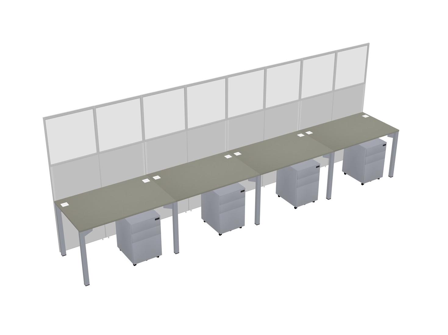 Grey Shadows Shared Rectangular Office Cubicle Panel System With Mobile Drawers For 4 Persons