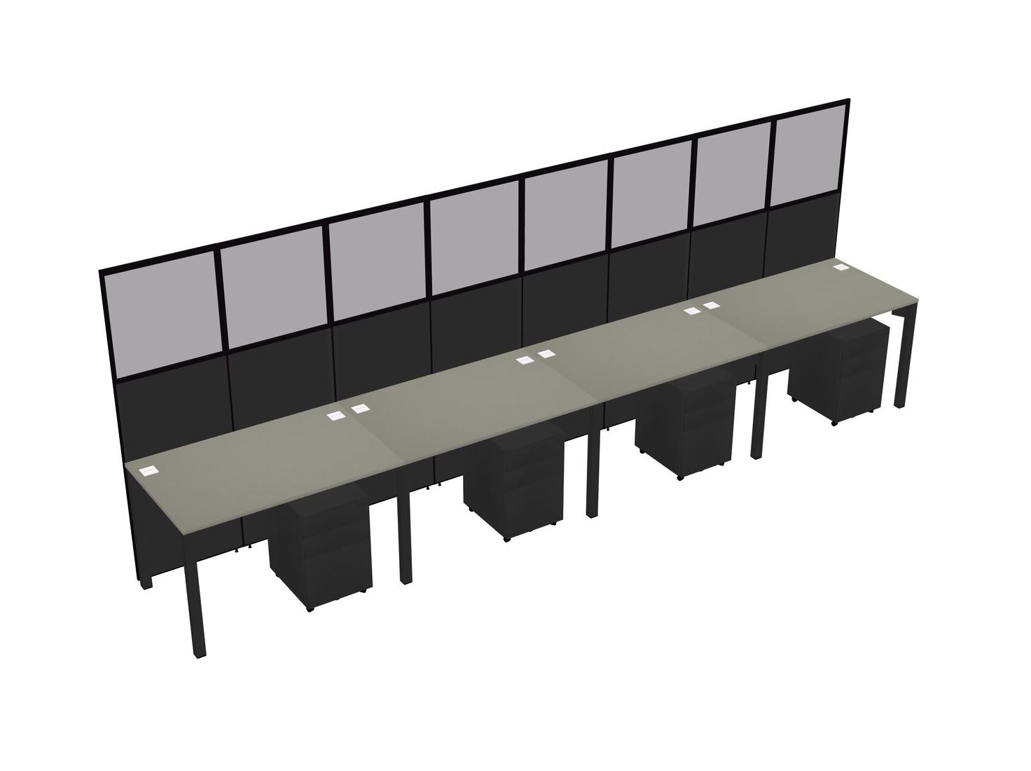 Grey Shadows Shared Rectangular Office Cubicle Panel System With Mobile Drawers For 4 Persons