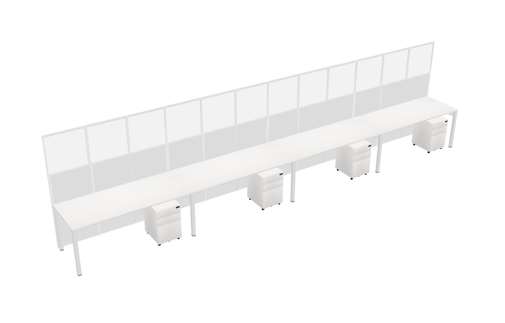 White Shared Rectangular Office Cubicle Panel System With Mobile Drawers For 4 Persons