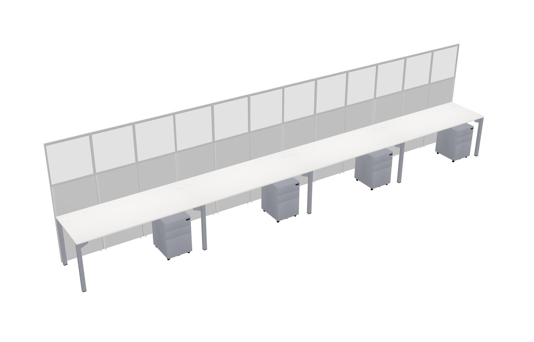 White Shared Rectangular Office Cubicle Panel System With Mobile Drawers For 4 Persons