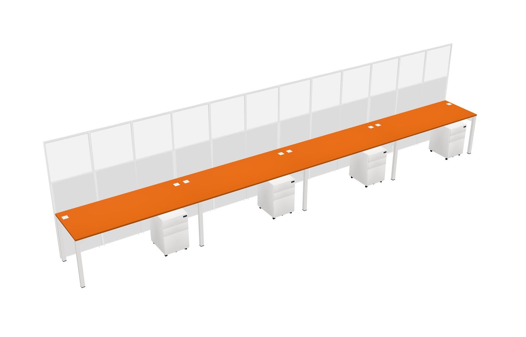 Orange Shared Rectangular Office Cubicle Panel System With Mobile Drawers For 4 Persons