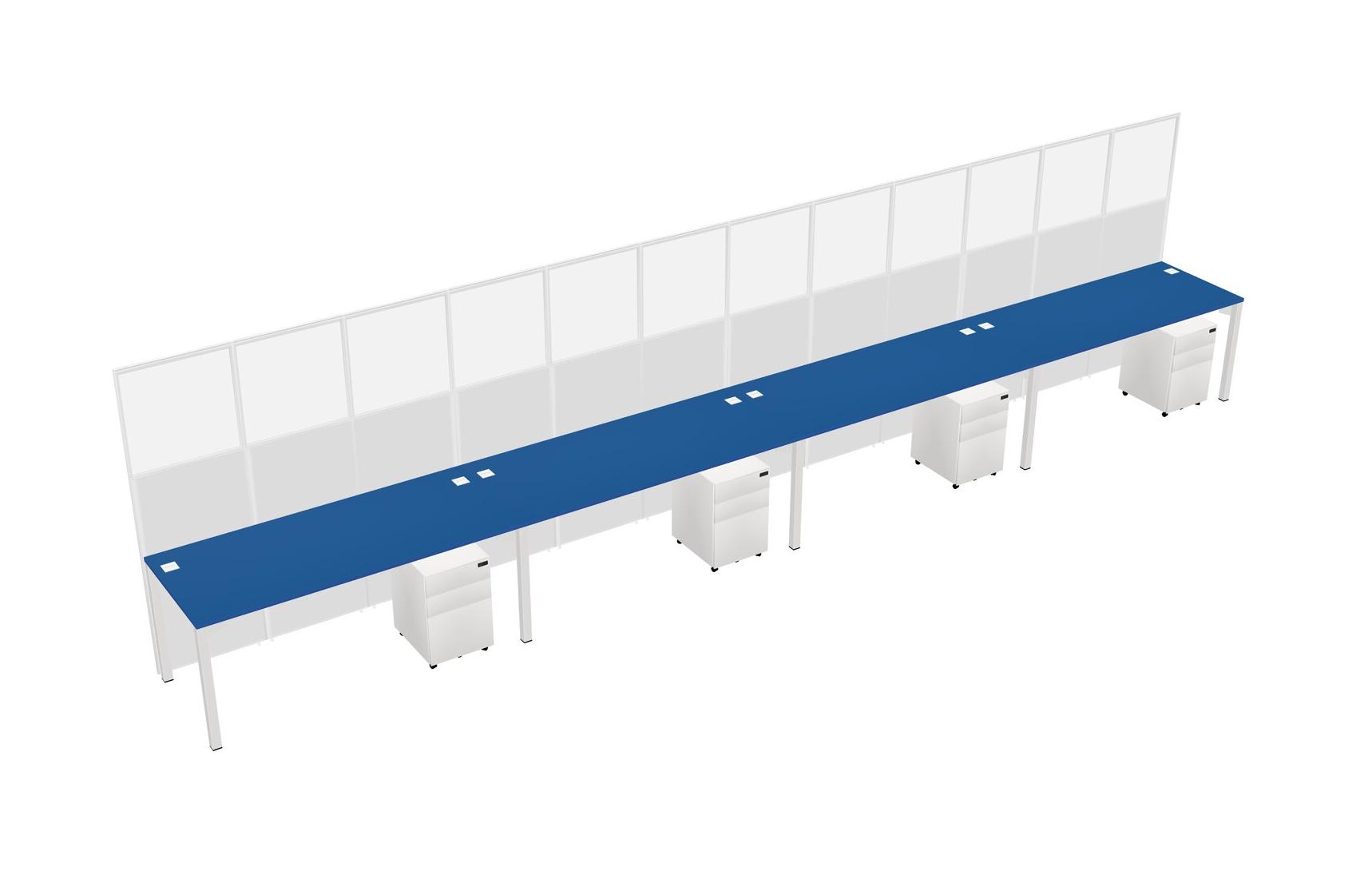 Prism Blue Shared Rectangular Office Cubicle Panel System With Mobile Drawers For 4 Persons