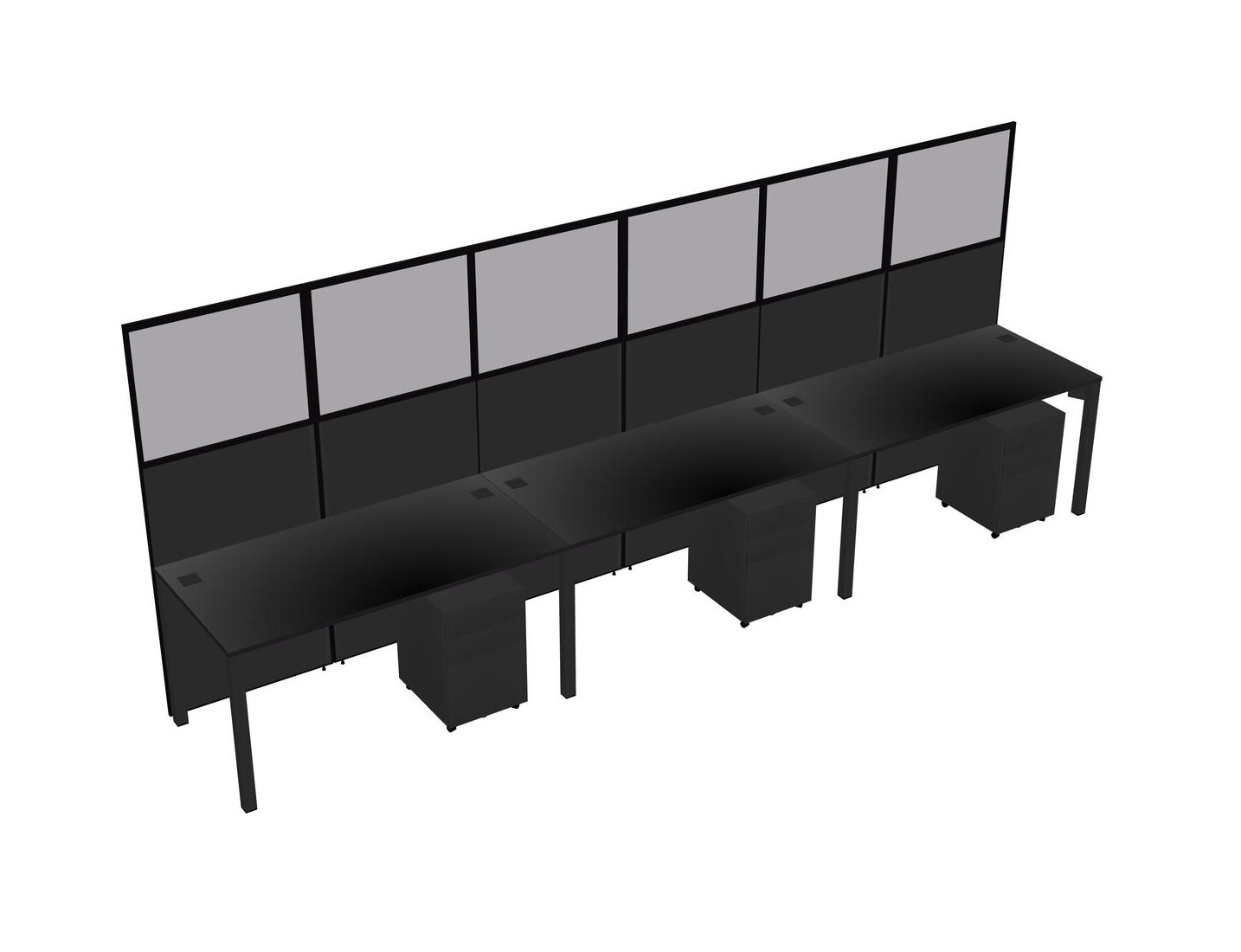 Black Shared Rectangular Office Cubicle Panel System With Mobile Drawers For 3 Persons