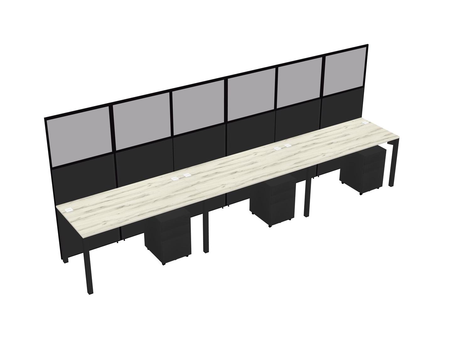 Heinne Holz Shared Rectangular Office Cubicle Panel System With Mobile Drawers For 3 Persons