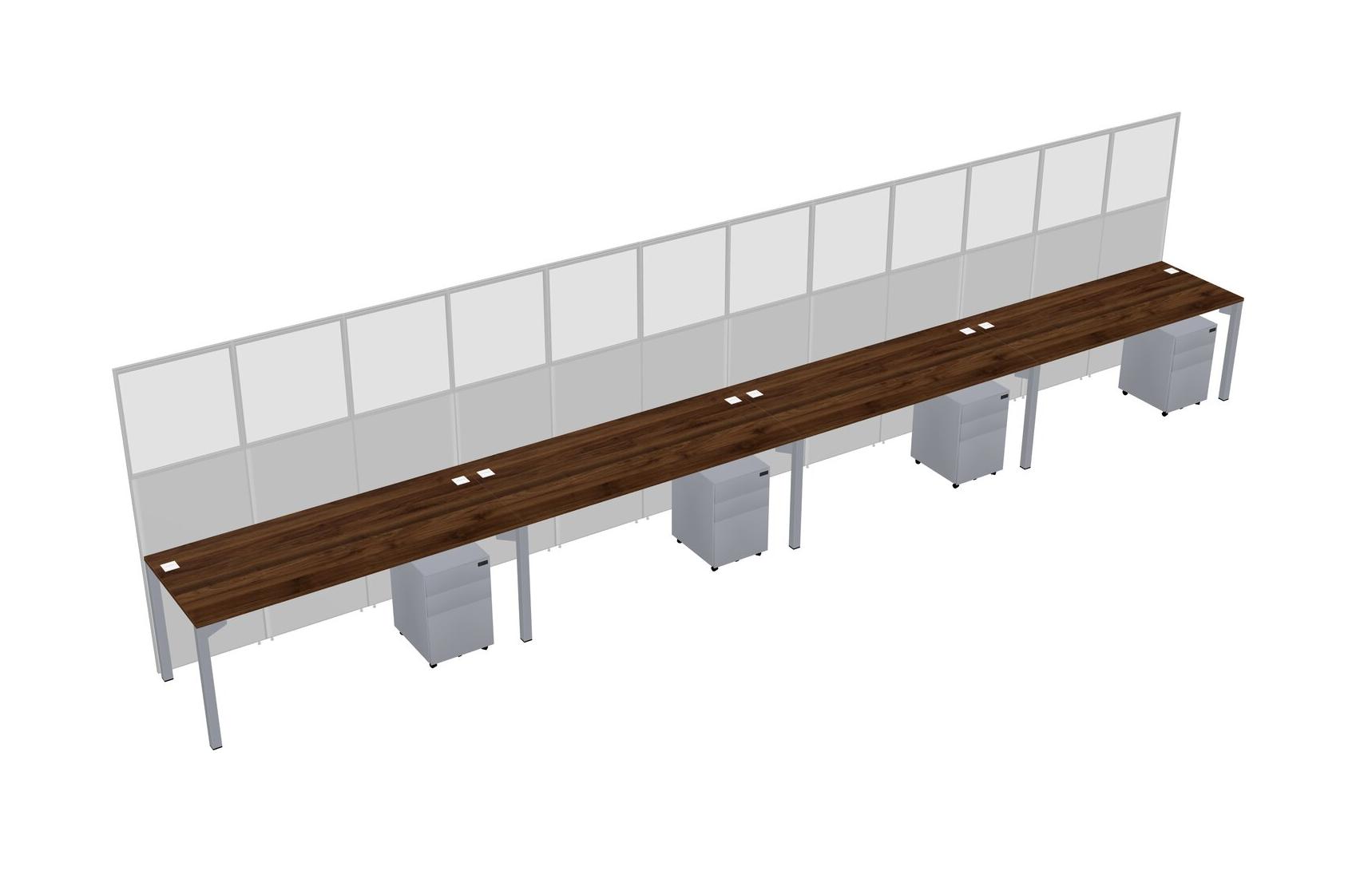 Columbia Walnut Shared Rectangular Office Cubicle Panel System With Mobile Drawers For 4 Persons