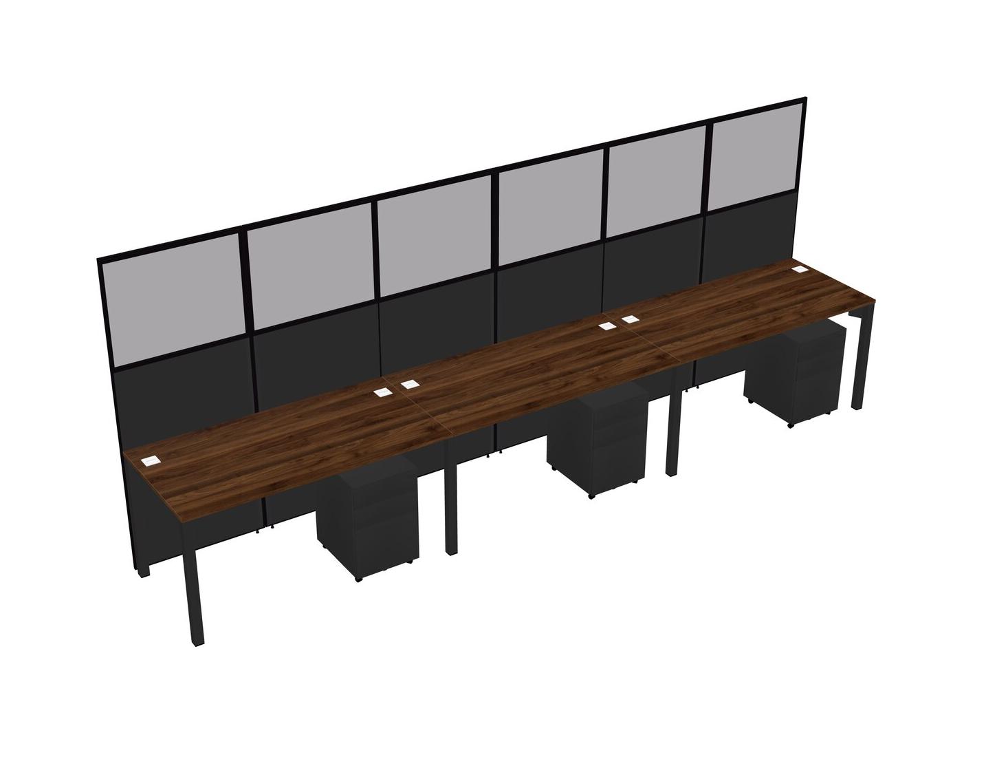 Columbia Walnut Shared Rectangular Office Cubicle Panel System With Mobile Drawers For 3 Persons