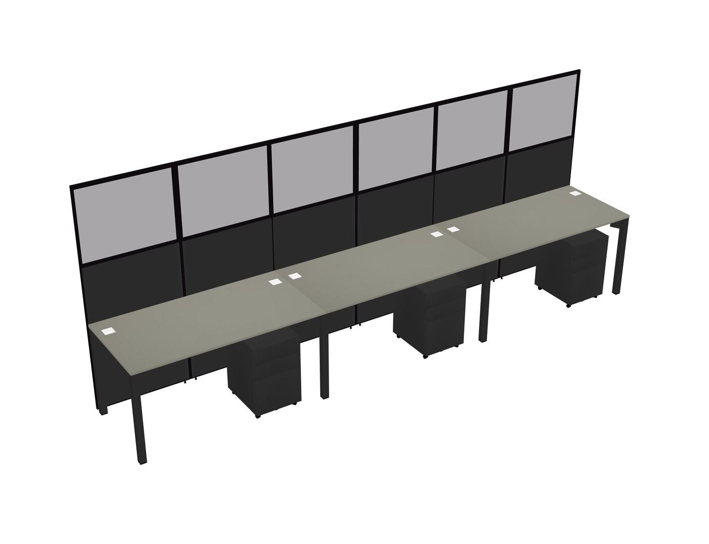 Grey Shadows Shared Rectangular Office Cubicle Panel System With Mobile Drawers For 3 Persons