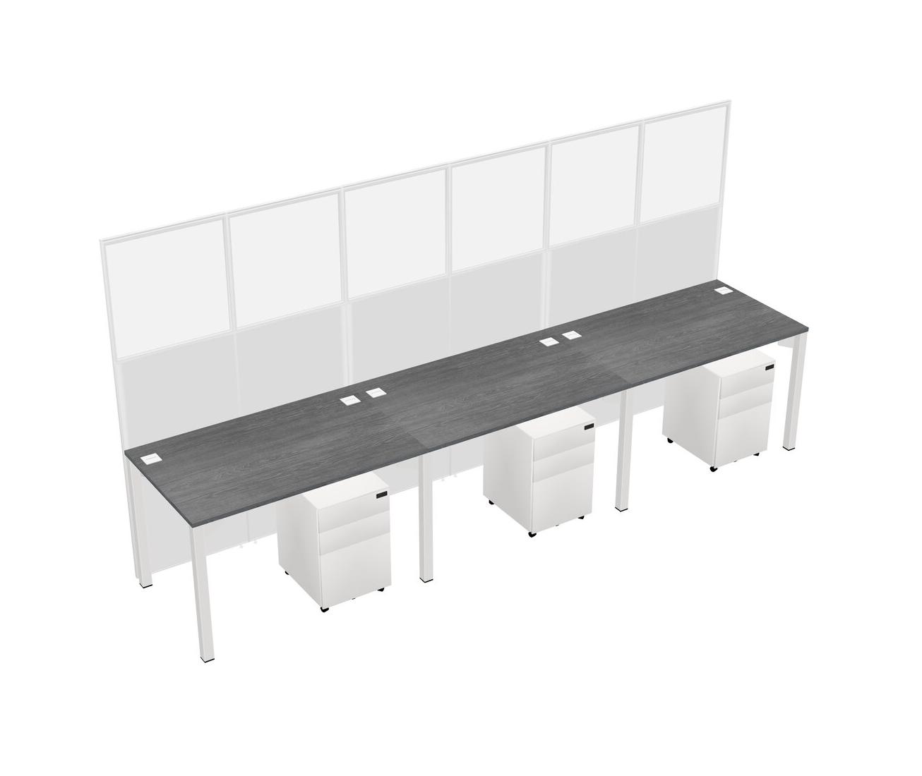 Grey Shared Rectangular Office Cubicle Panel System With Mobile Drawers For 3 Persons