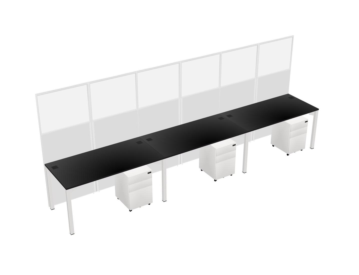 Black Shared Rectangular Office Cubicle Panel System With Mobile Drawers For 3 Persons