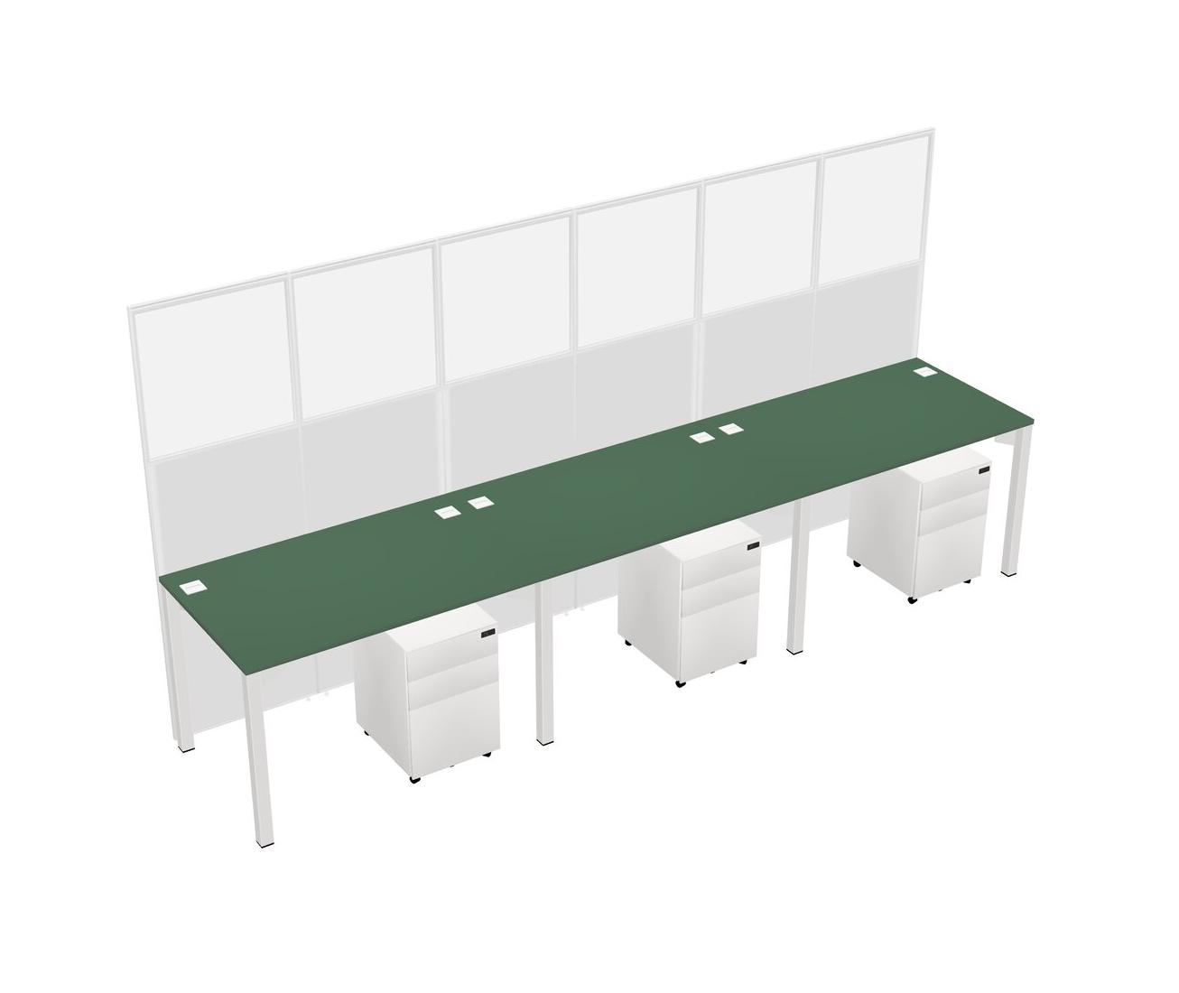 Green Shared Rectangular Office Cubicle Panel System With Mobile Drawers For 3 Persons