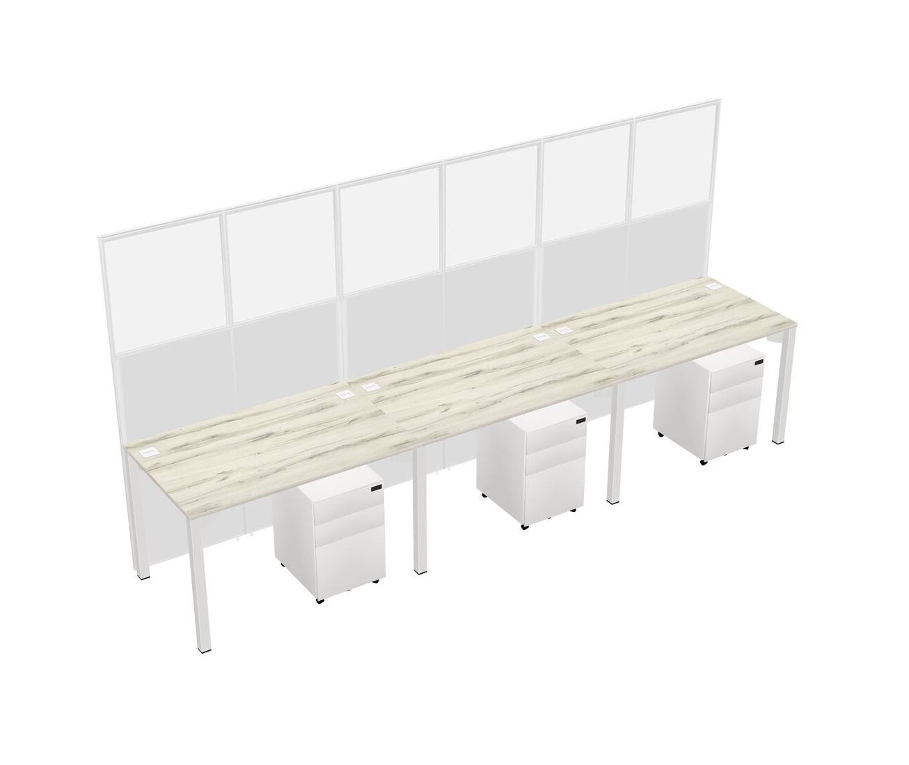 Heinne Holz Shared Rectangular Office Cubicle Panel System With Mobile Drawers For 3 Persons