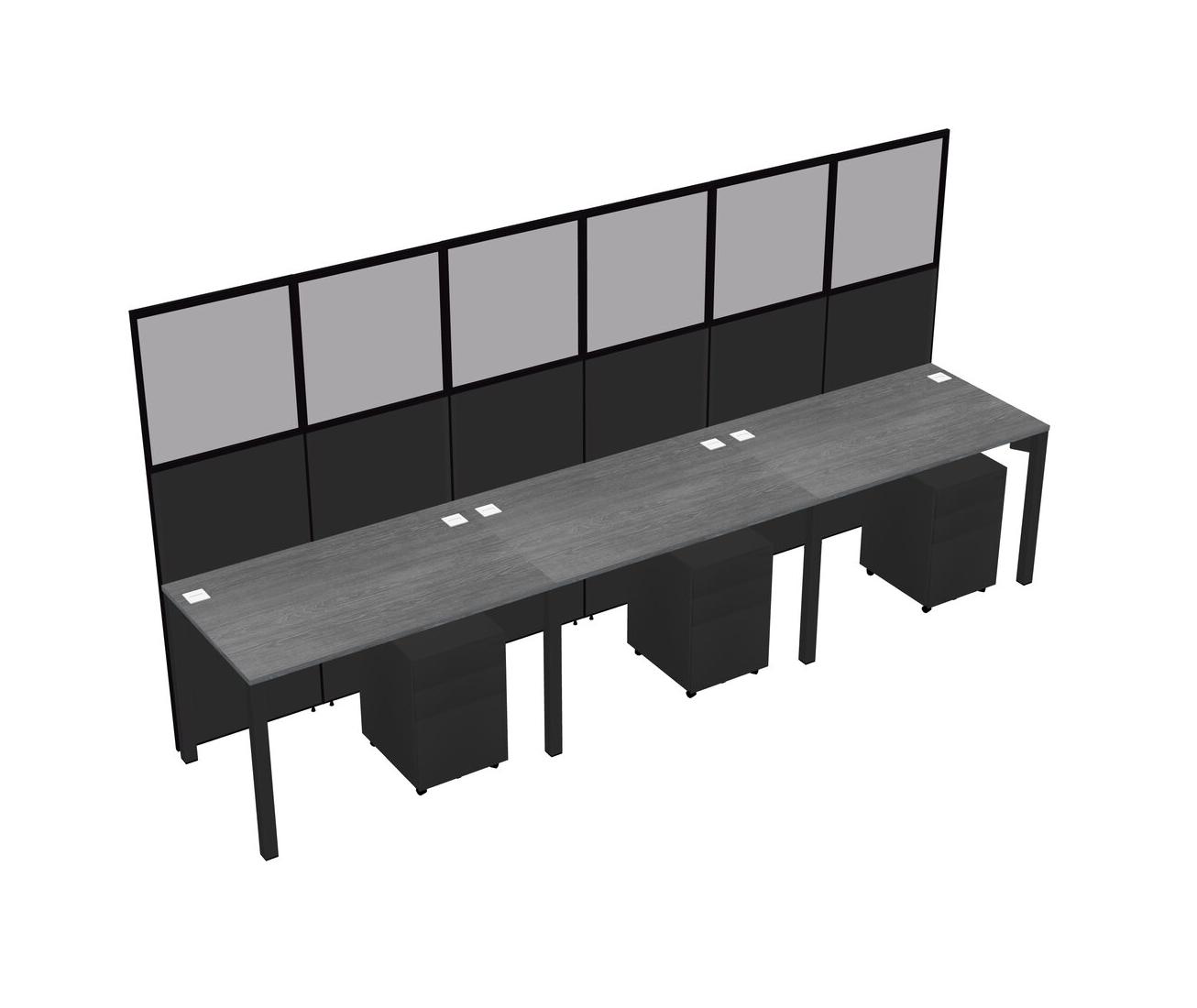 Grey Shared Rectangular Office Cubicle Panel System With Mobile Drawers For 3 Persons