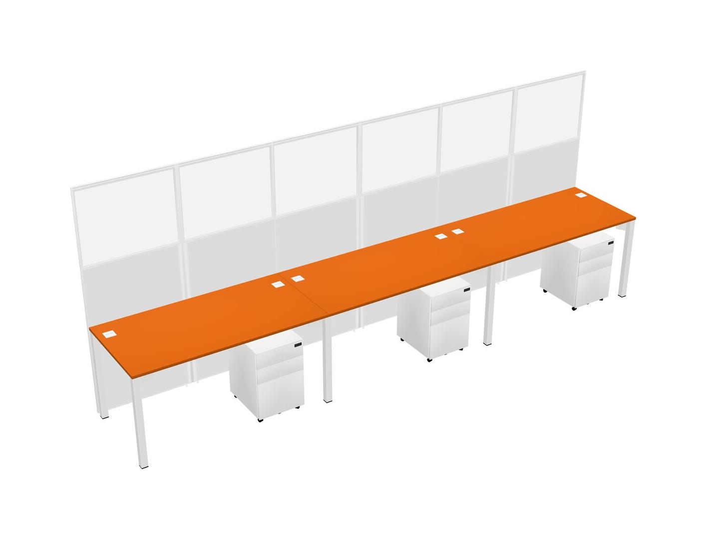 Orange Shared Rectangular Office Cubicle Panel System With Mobile Drawers For 3 Persons