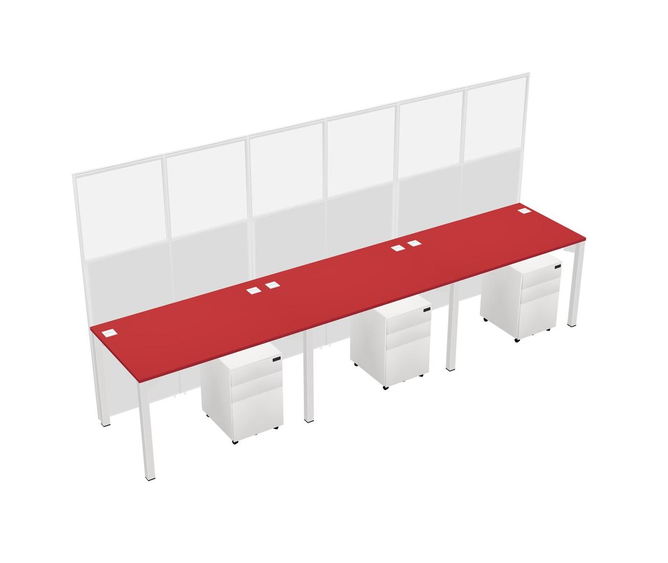 Prism Red Shared Rectangular Office Cubicle Panel System With Mobile Drawers For 3 Persons